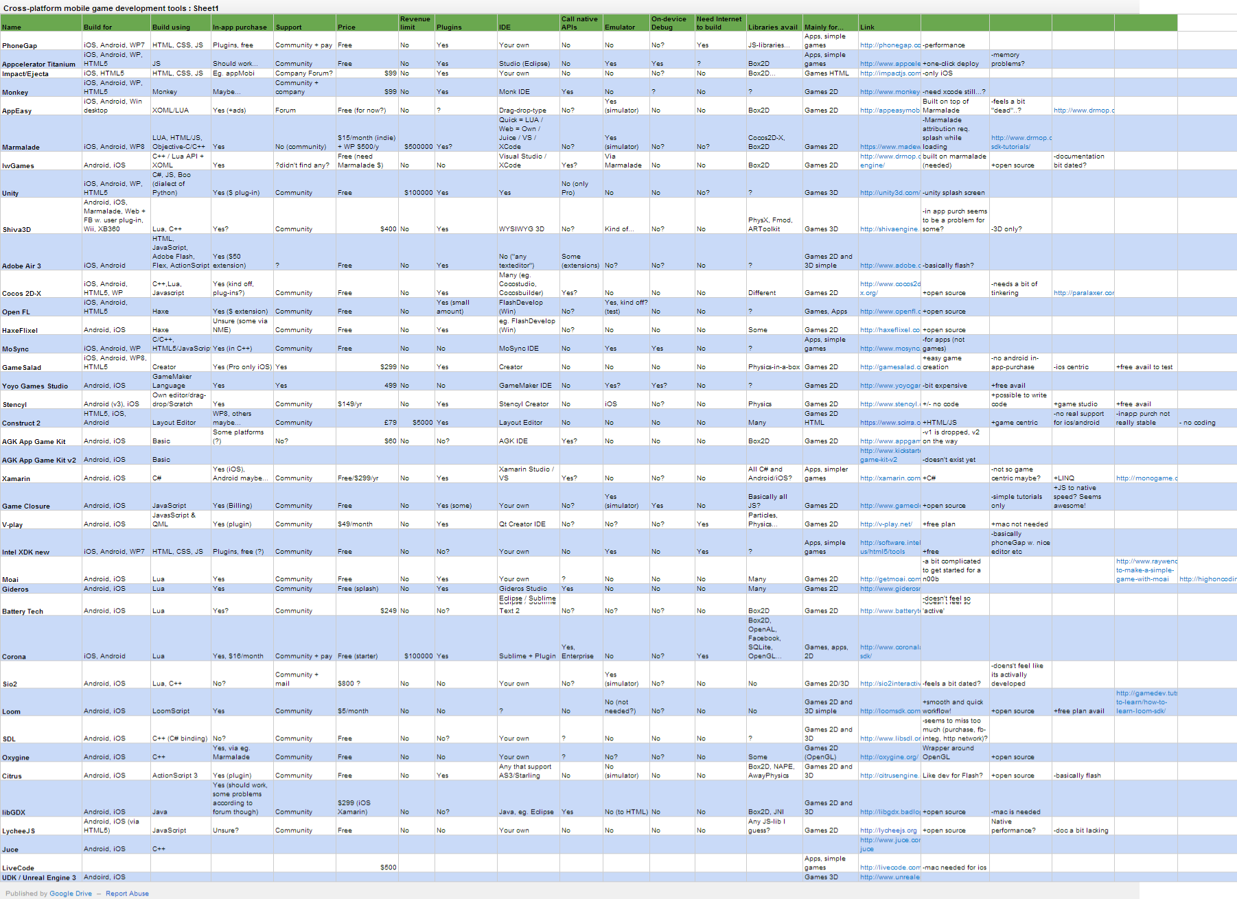 Going into game/app development for mobiles I wanted to see what the different choices are out there. And there are choices...